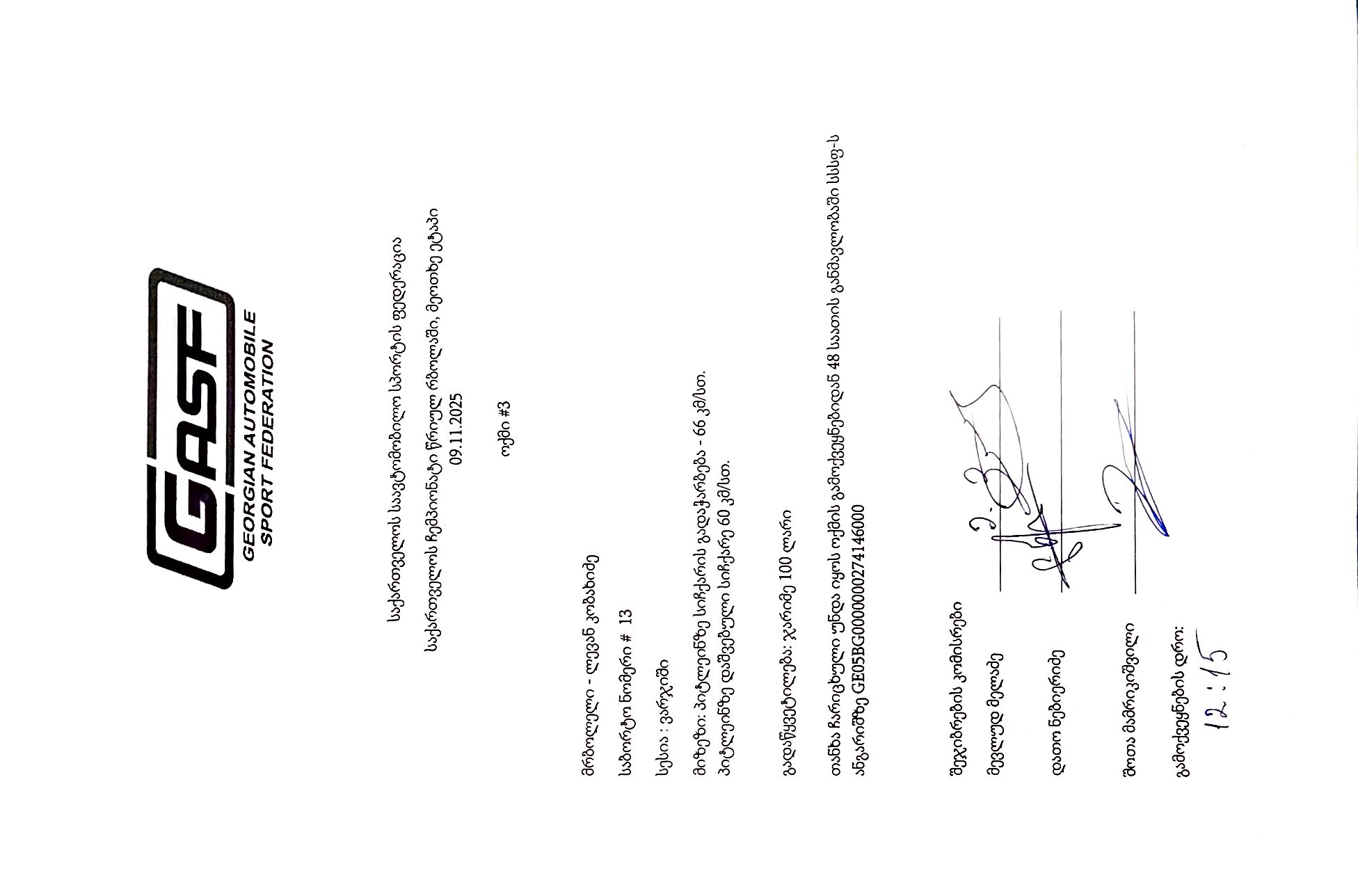 N13 Levan kobakhidze 3 place grid penalty in next race